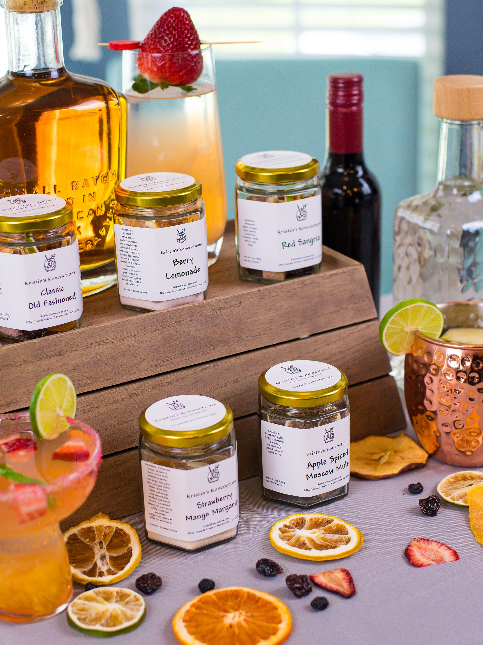 Please note that no alcohol is included. Every product label explains the kind of alcohol to use, any other ingredients they may need, and how to make the cocktail.