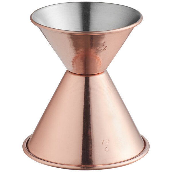 Featuring a sleek, modern copper colored exterior, this jigger is made of durable stainless steel that is easy to clean and won't corrode when used with acidic ingredients.