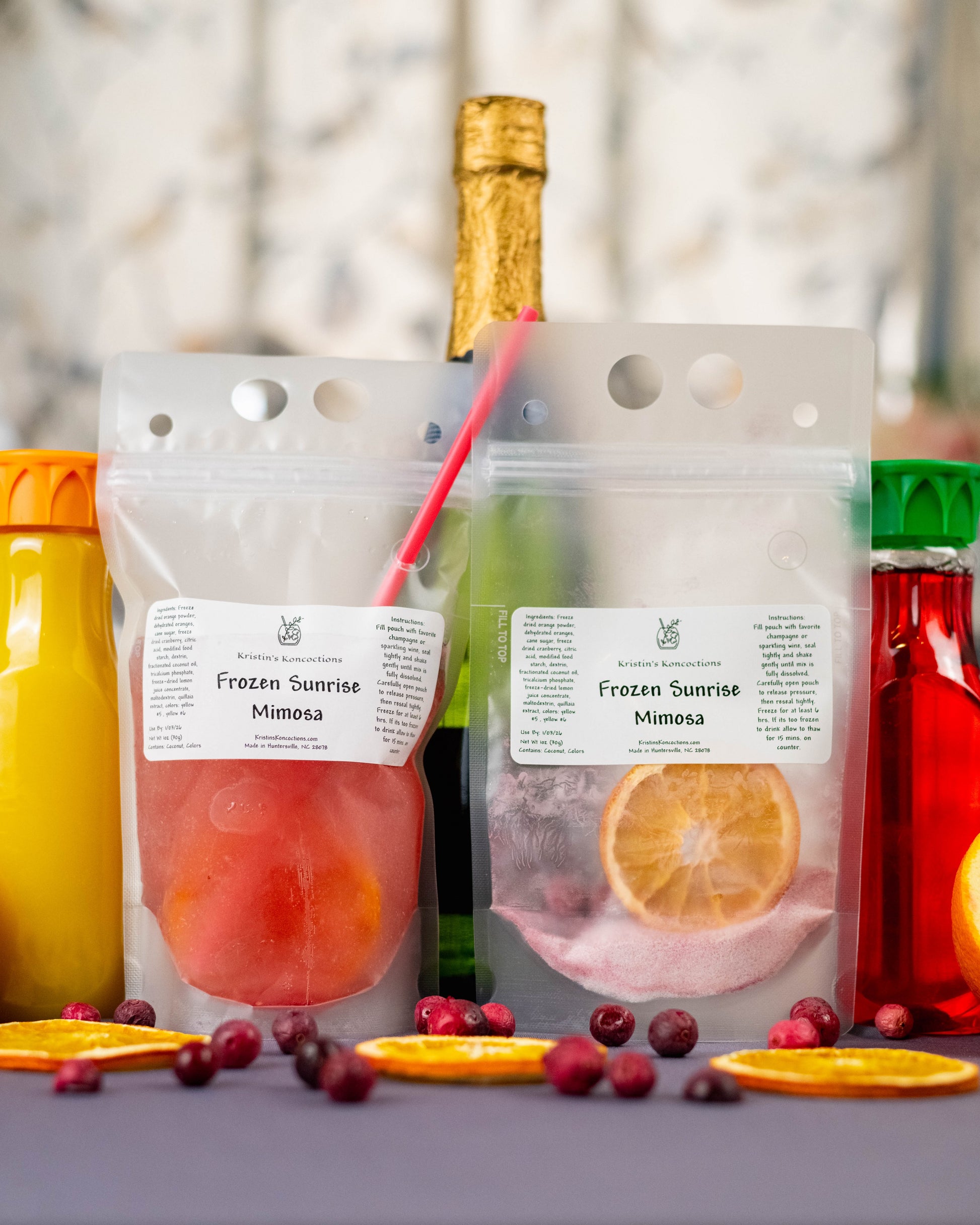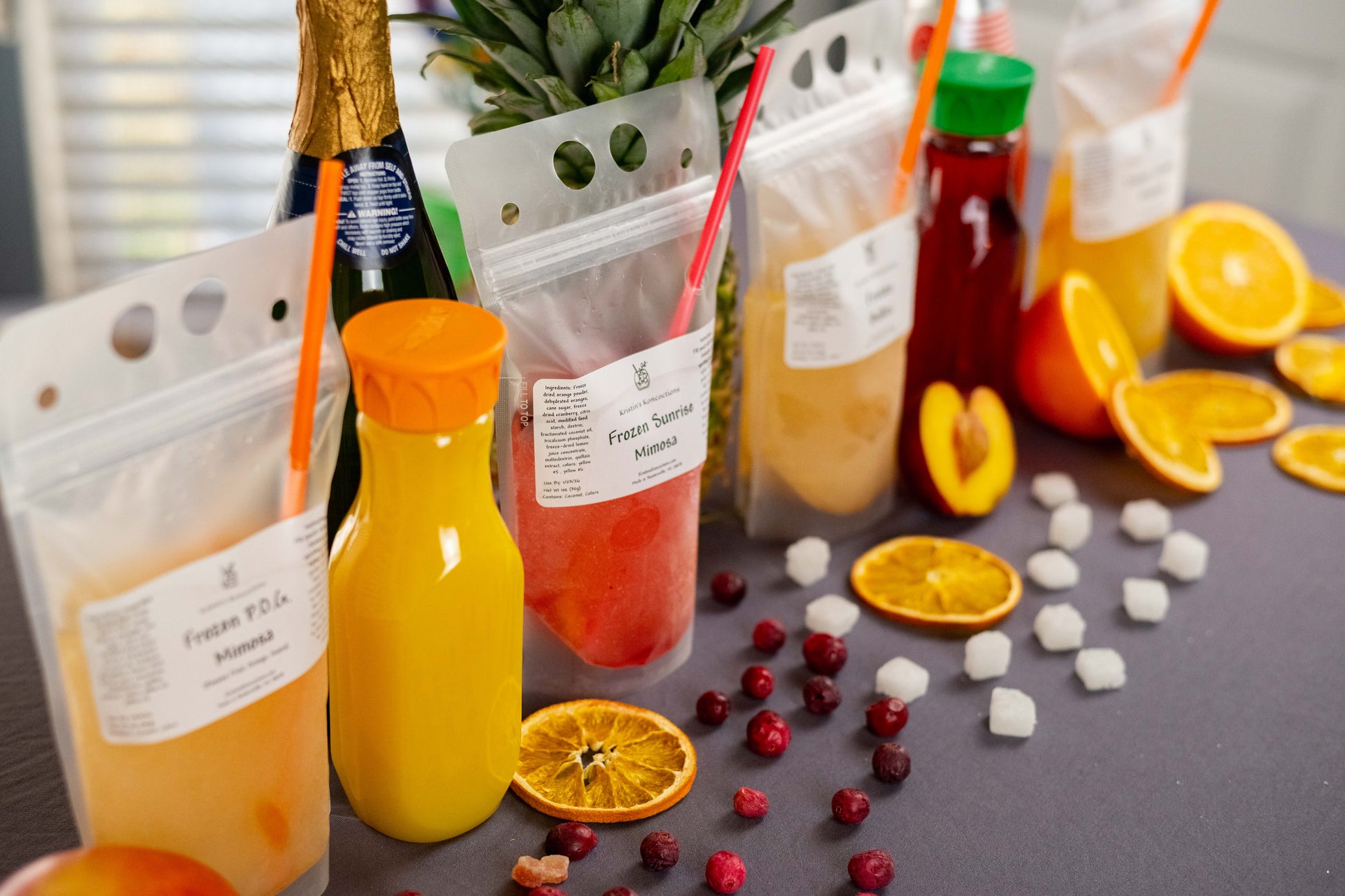 These drink pouches make delicious frozen mimosas for you to enjoy all summer long! Each drink comes in a plastic drink pouch so you can enjoy poolside or at the beach without worrying about broken glass. Just fill with wine and freeze for 6 hours! Or freeze overnight then throw in your cooler and bring on the go!