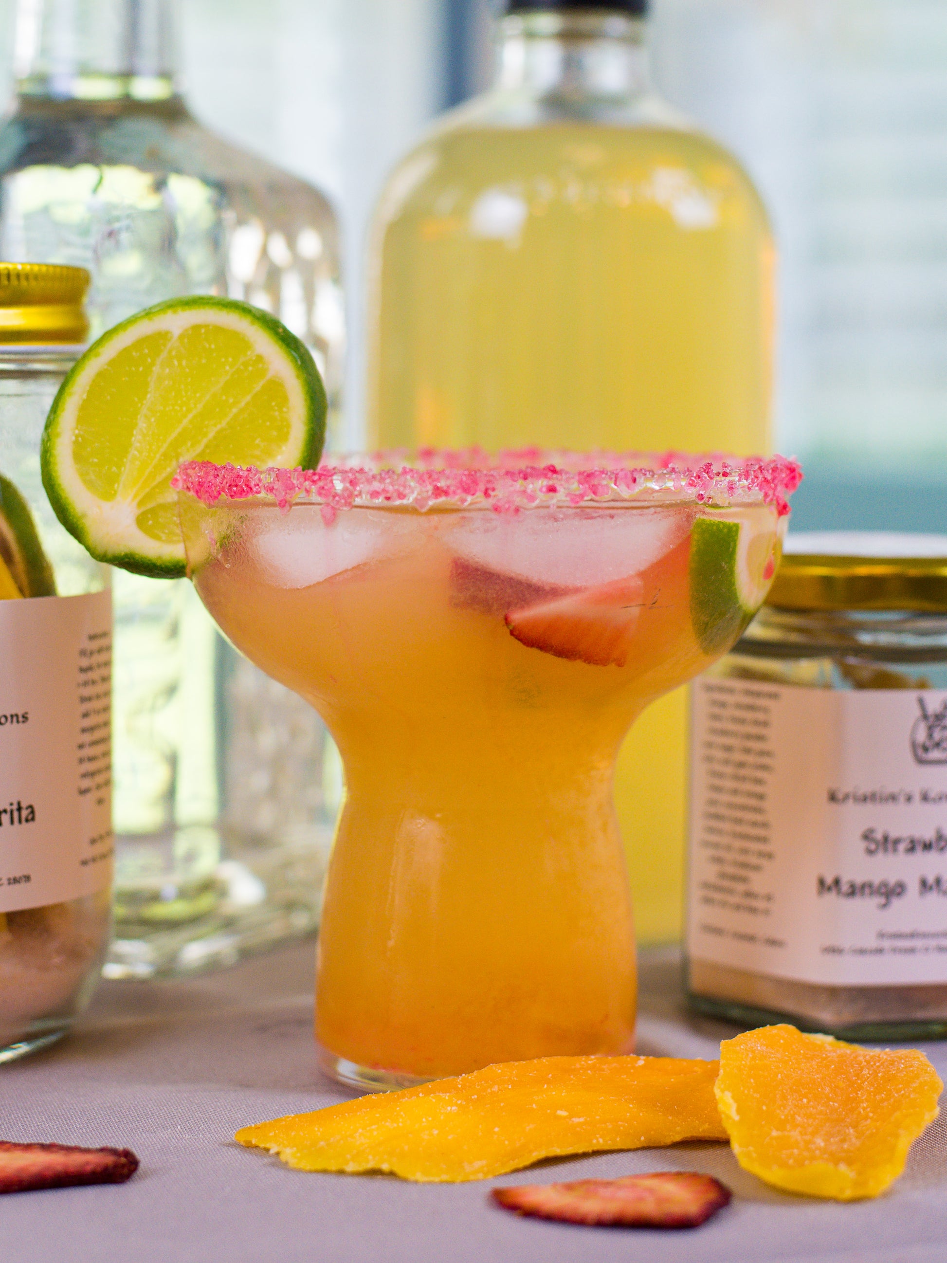 - Strawberry Mango Margarita: Our signature margarita mix with mangos, strawberries and limes.