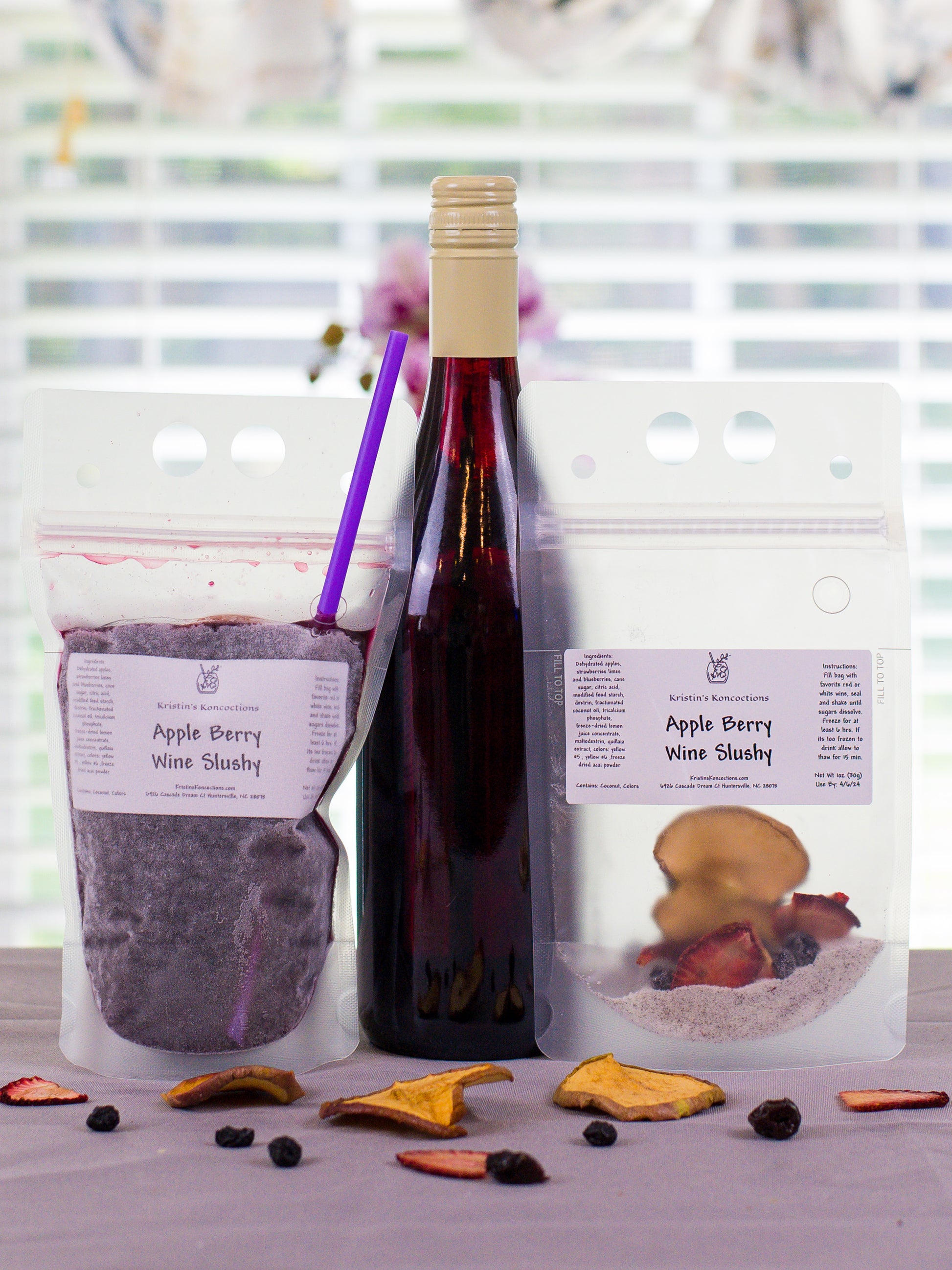 - Apple Berry - Apples, acai, lime, strawberry and blueberry - goes great with white OR red wine!